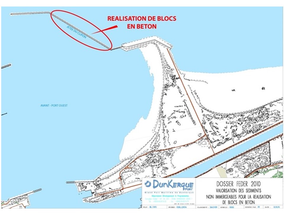 Au printemps 2013, le Grand Port Maritime de Dunkerque a initié le projet de fabrication de 110 blocs de béton à base de sédiment. L’objectif : renforcer les digues du Port-Ouest.